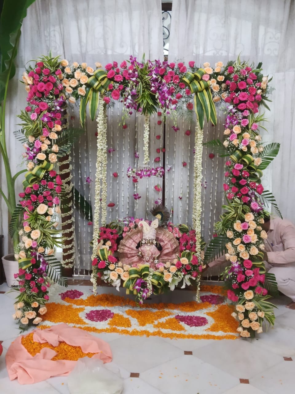 Enhance your Janamshatmi celebrations with our exquisite flower decor. Immerse yourself in the beauty and fragrance of fresh blooms.